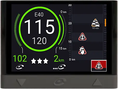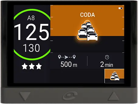 Per procedere con prudenza, invia avvisi sugli autovelox fissi e mobili e sui tutor. Grazie alla leggibilità ottimale e alle indicazioni chiare e intuitive, questo segnalatore dimostra la sua praticità in ogni situazione. Inoltre, grazie al Bluetooth, Coyote mini può essere collegato all'auto.